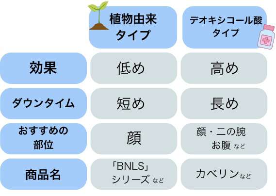 デオキシコール酸タイプの注射を選ぶと、比較的効果を望みやすくなります。