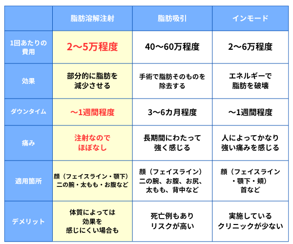 脂肪吸引ほどの圧倒的な効果は望みにくい脂肪溶解注射ですが、
